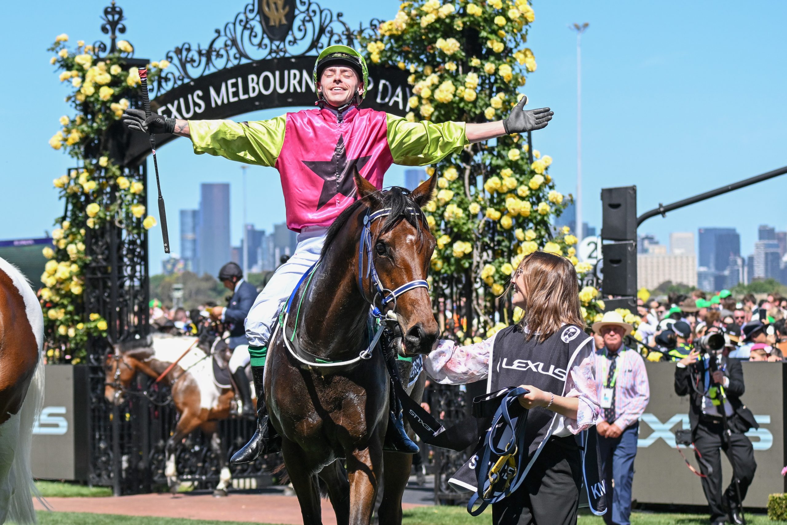 Melbourne Cup Winning Jockey Robbie Dolan Returns to His Roots with Visit to The Curragh Racecourse on Saturday 16th August Knight's Choice ridden by Robbie Dolan returns to the mounting yard after winning the Lexus Melbourne Cup at Flemington Racecourse on November 05, 2024 in Flemington, Australia. (Photo by Reg Ryan/Racing Photos)